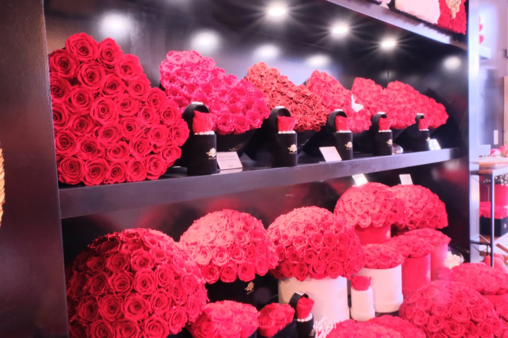 The space is beautiful. Roses everywhere. Elegant boxes. Thoughtful details. You can tell nothing is accidental. More here at: https://www.royalflower.ca/